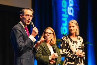 De Dag vd Digitalisering is een gezamenlijke initiatief van Topsector ICT en NLdigital, waarbij kennis en praktijk bij elkaar zijn gebracht. Topsector ICT is sterk geworteld in de innovatiekant en brengt kennisinstellingen, onderzoekers en bedrijven samen om nieuwe digitale technologieën te ontwikkelen en in te zetten voor maatschappelijke uitdagingen. “Maar innovatie heeft pas echt impact als het landt in de praktijk. Dáár hebben we partners zoals NLdigital hard bij nodig. Samen zorgen we ervoor dat digitale innovaties niet in een lab blijven hangen, maar daadwerkelijk de samenleving bereiken — veilig, verantwoord en toekomstbestendig”, aldus Grotenhuis.