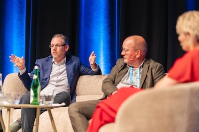 Na de koffie- en theepauze was het tijd voor een debat over het belang van digitalisering. In aanloop naar de verkiezingen gaan experts in gesprek over op die dag gepubliceerde onderzoeksresultaten van Ipsos I&O in opdracht van NLdigital: wat vindt Nederland van digitalisering en waarom is dit cruciaal voor onze welvaart? Peter Kanne, onderzoeksadviseur en kiezersonderzoeker bij Ipsos I&O, Koen Gijsbers, senior strategisch adviseur voor overheden en bedrijven, voorheen operationeel militair en leidinggevende aan digitale transformaties bij defensie en de NAVO, en Focco Vijselaar, algemeen directeur van VNO-NCW, deelden hun visie en gaven duidelijke boodschappen mee aan het volgende kabinet. Ook hier was er veel interactie met de zaal.