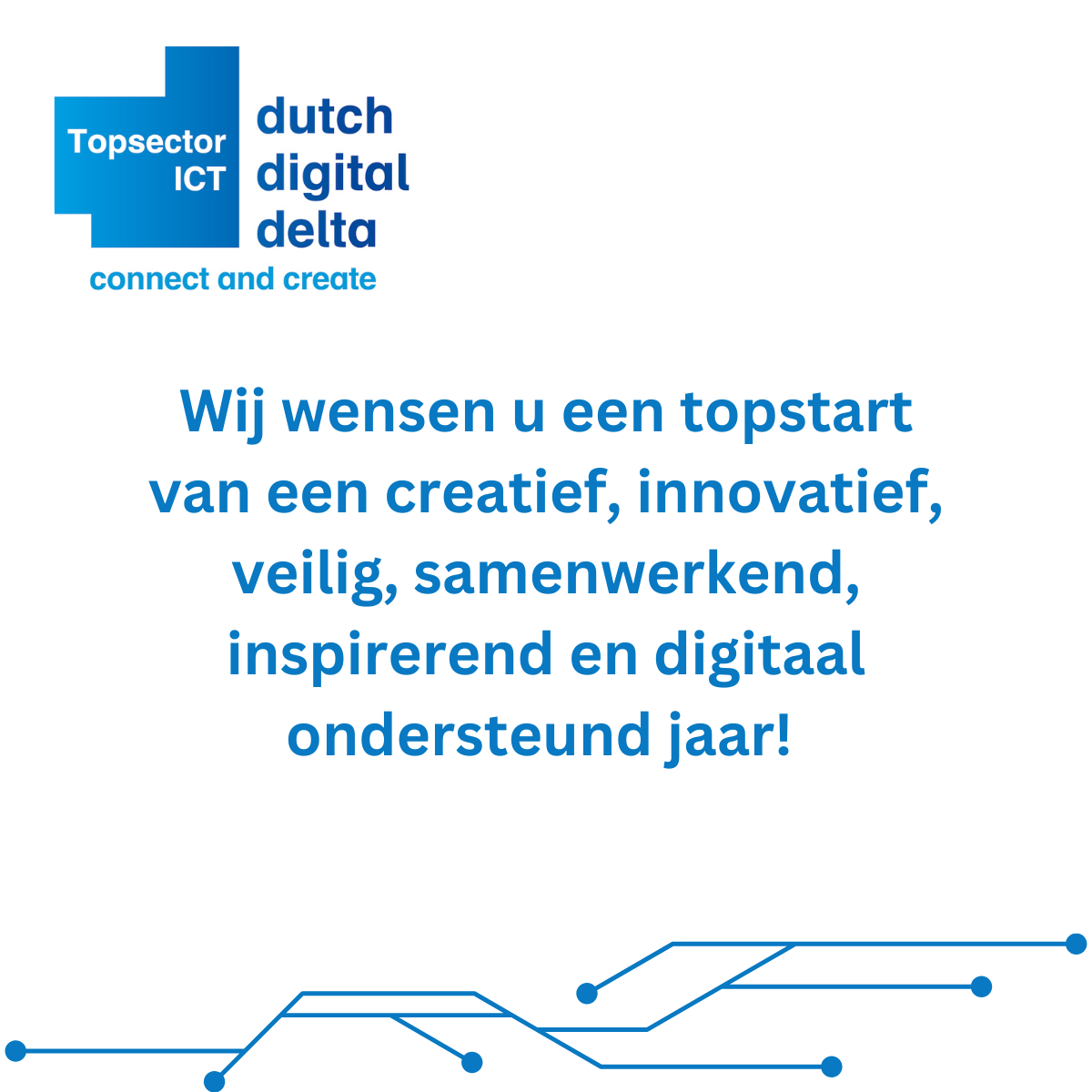 De afbeeldingen bevat het volgende bericht: Wij wensen u een topstart van een creatief, innovatief, veilig, samenwerkend, inspirerend en digitaal ondersteunend jaar!
