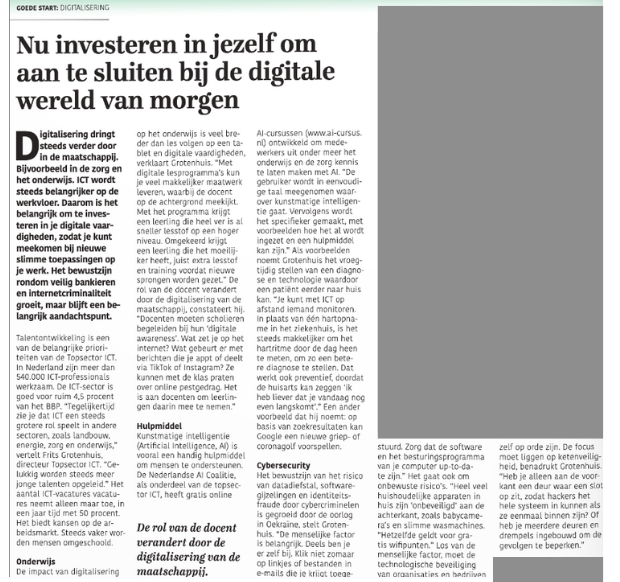 In de Telegraaf bijsluiter Goede Start legt directeur Frits Grotenhuis uit waarom het voor ons allemaal belangrijk is te blijven investeren in digitale vaardigheden.